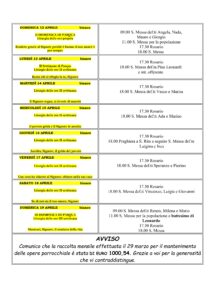 S. Messa festiva: ore 9:00 – ore 11:00- ore 18:00